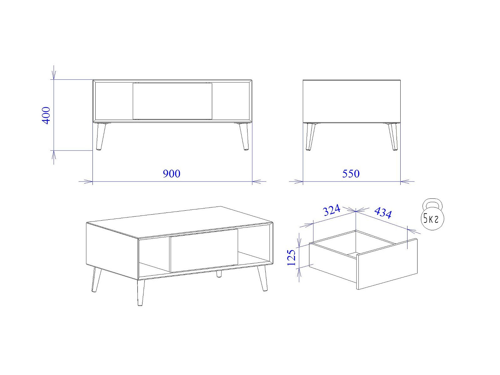 Макс.нагрузка на ящик (кг): 5
