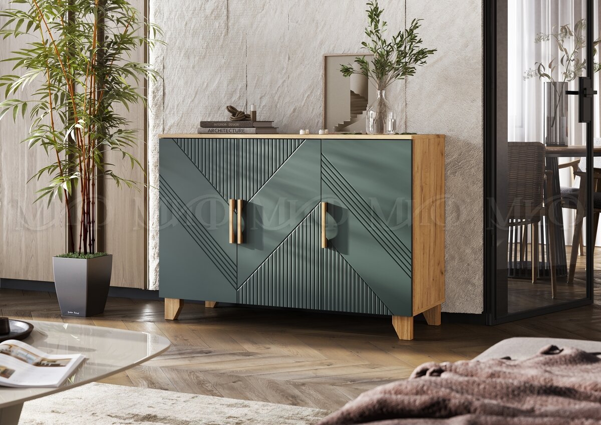 - Комод (1200) Ирис Браш Мени Грин, Дуб Крафт