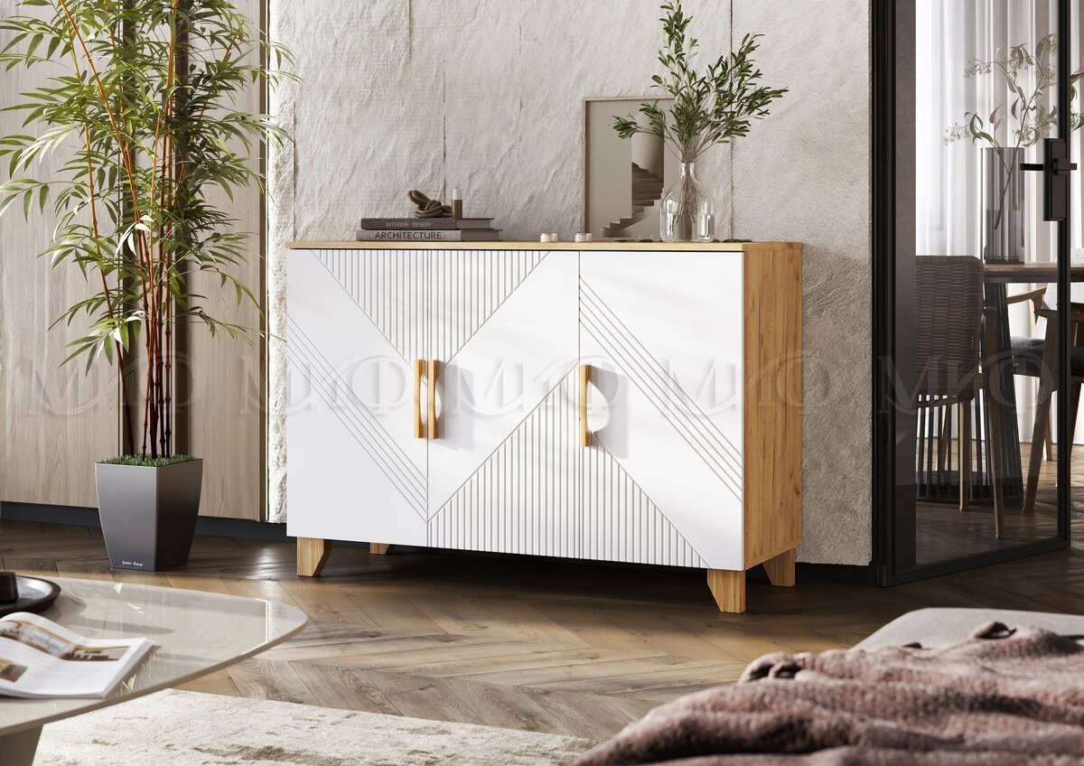 - Комод (1200) Ирис Браш Вайт, Дуб Крафт