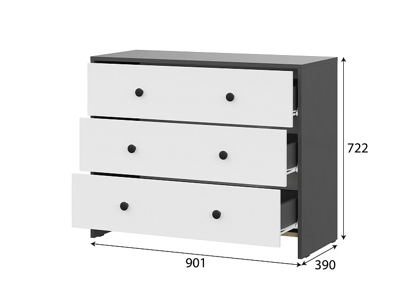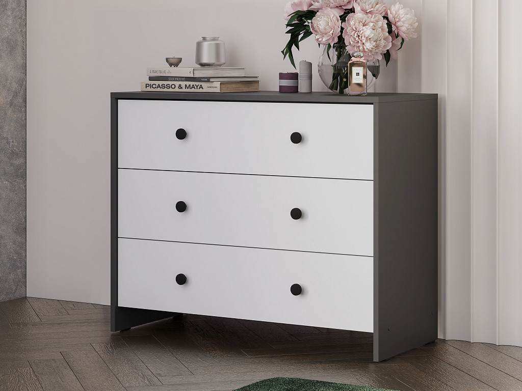 - Комод 3 ящика Дольче Графит/Белый