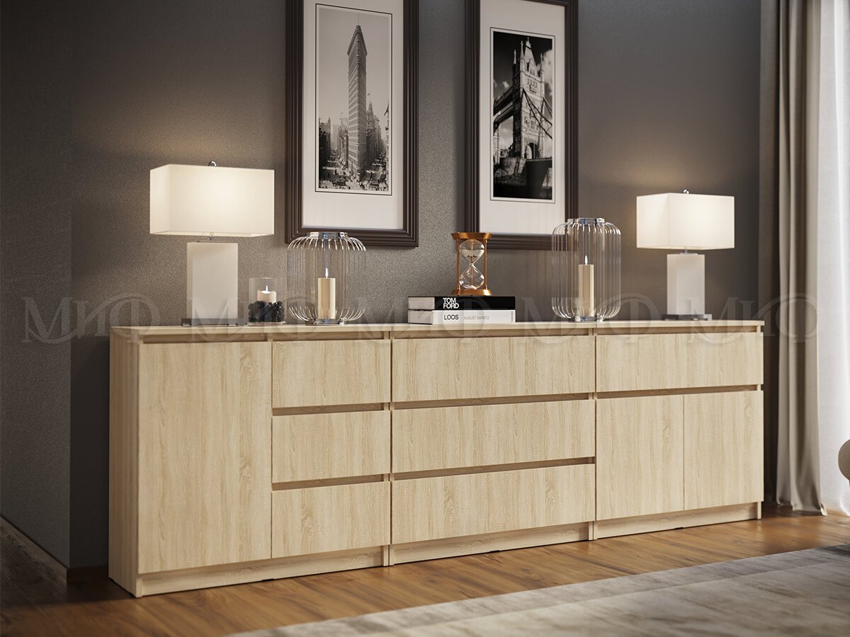 - Комод 800 3 ящика 1 дверь Челси дуб сонома