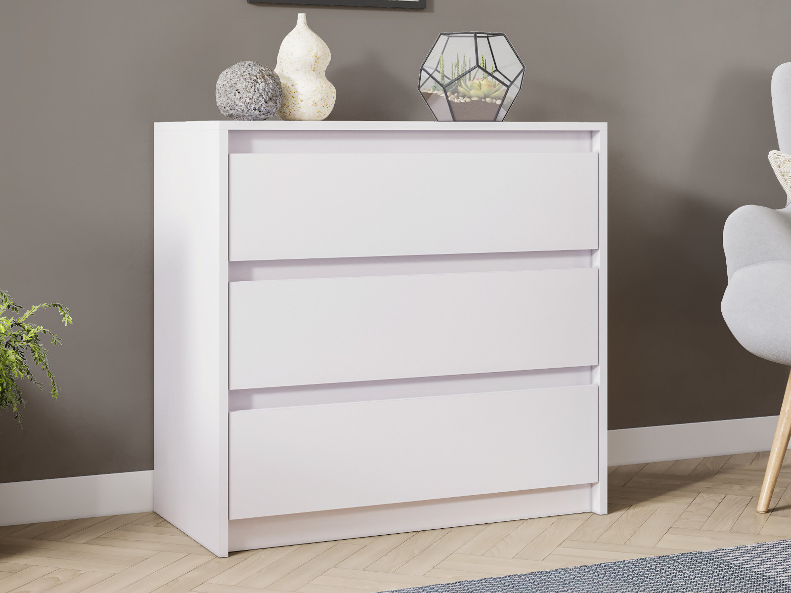 Лицевая фурнитура отсутствует. Ящики открываются с помощью захвата рукой