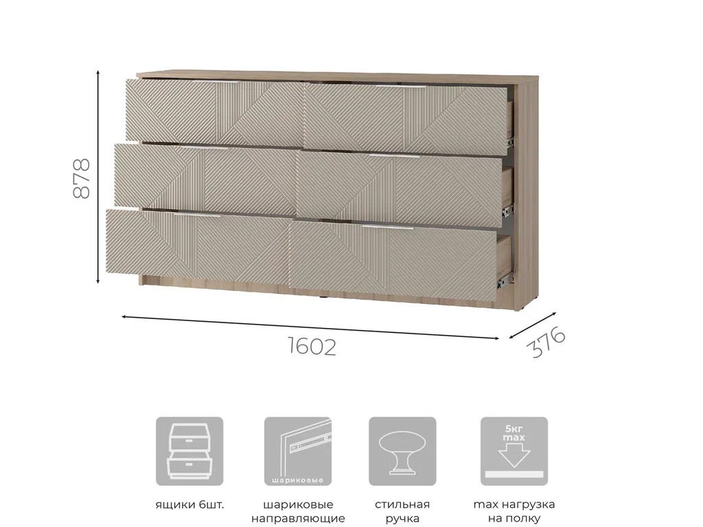 Размеры (ширина, глубина, высота): 1602x376x878 мм