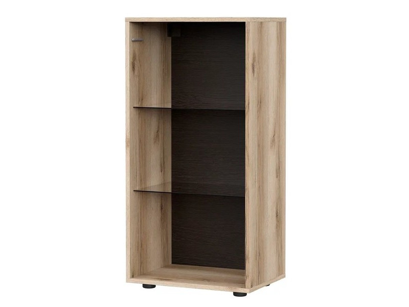 Тумба с тонированным стеклом на отталкивателе устанавливается на пол, подвешивается к стене, устанавливается друг на друга, превращаясь в высокий стеклопенал, равный по высоте и глубине глухому пеналу коллекции «Берген».