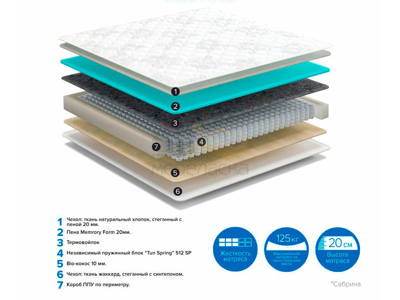 - Матрас Sabrina No Flip ширина 1200