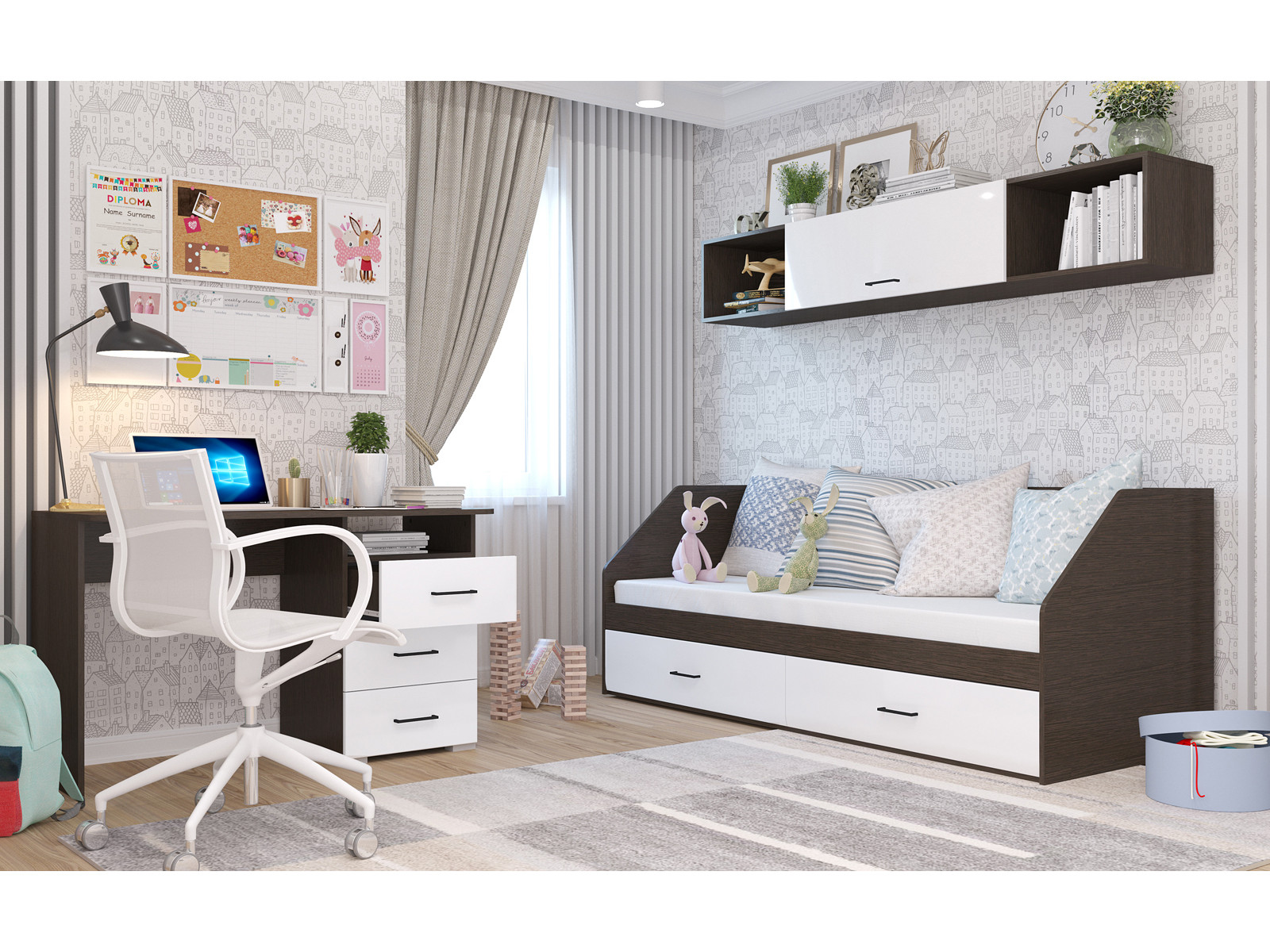 Цена за комплект: Полка навесная 2032, Кровать , Стол 1200/3 ящ