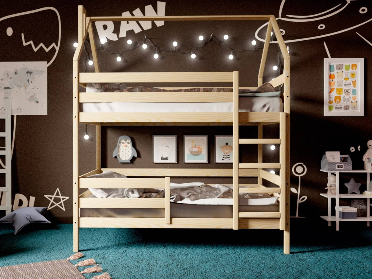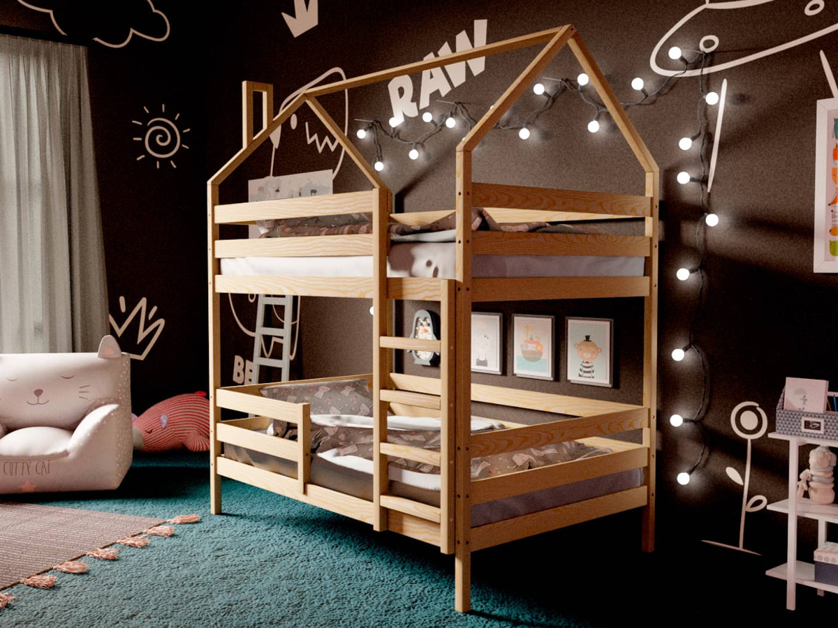 - Двухъярусная кровать-домик без покраски 80х190 см