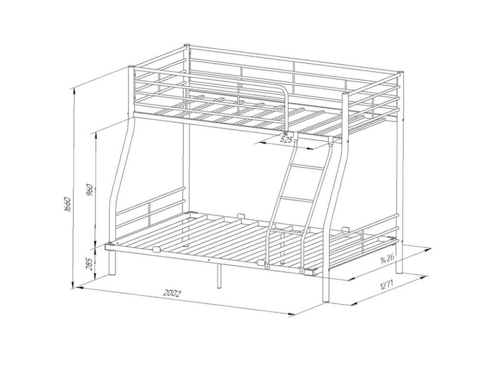 Размер нижнего спального места: 1400х1900 мм