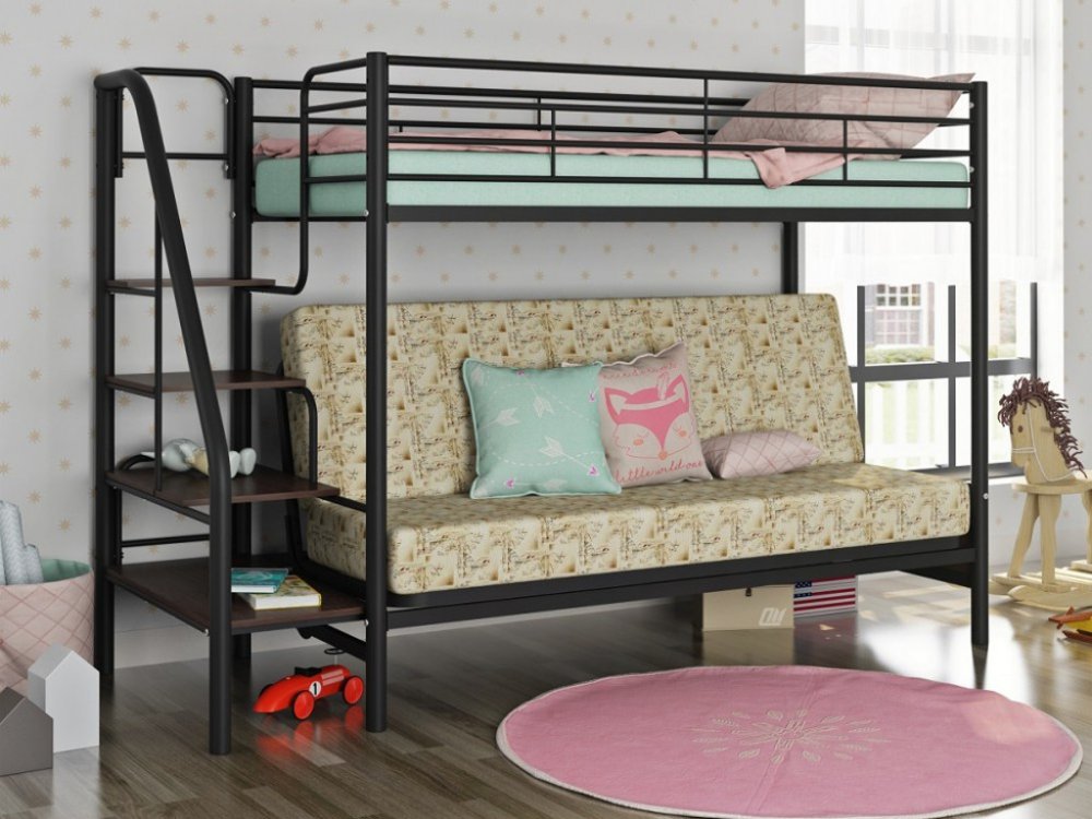 - Двухъярусная кровать с диваном Мадлен 3 черный