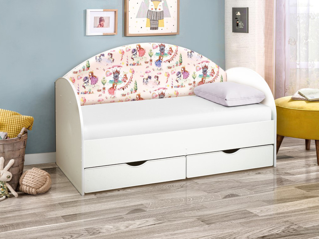 - Кровать с продольной мягкой спинкой Софа №11 принцесски