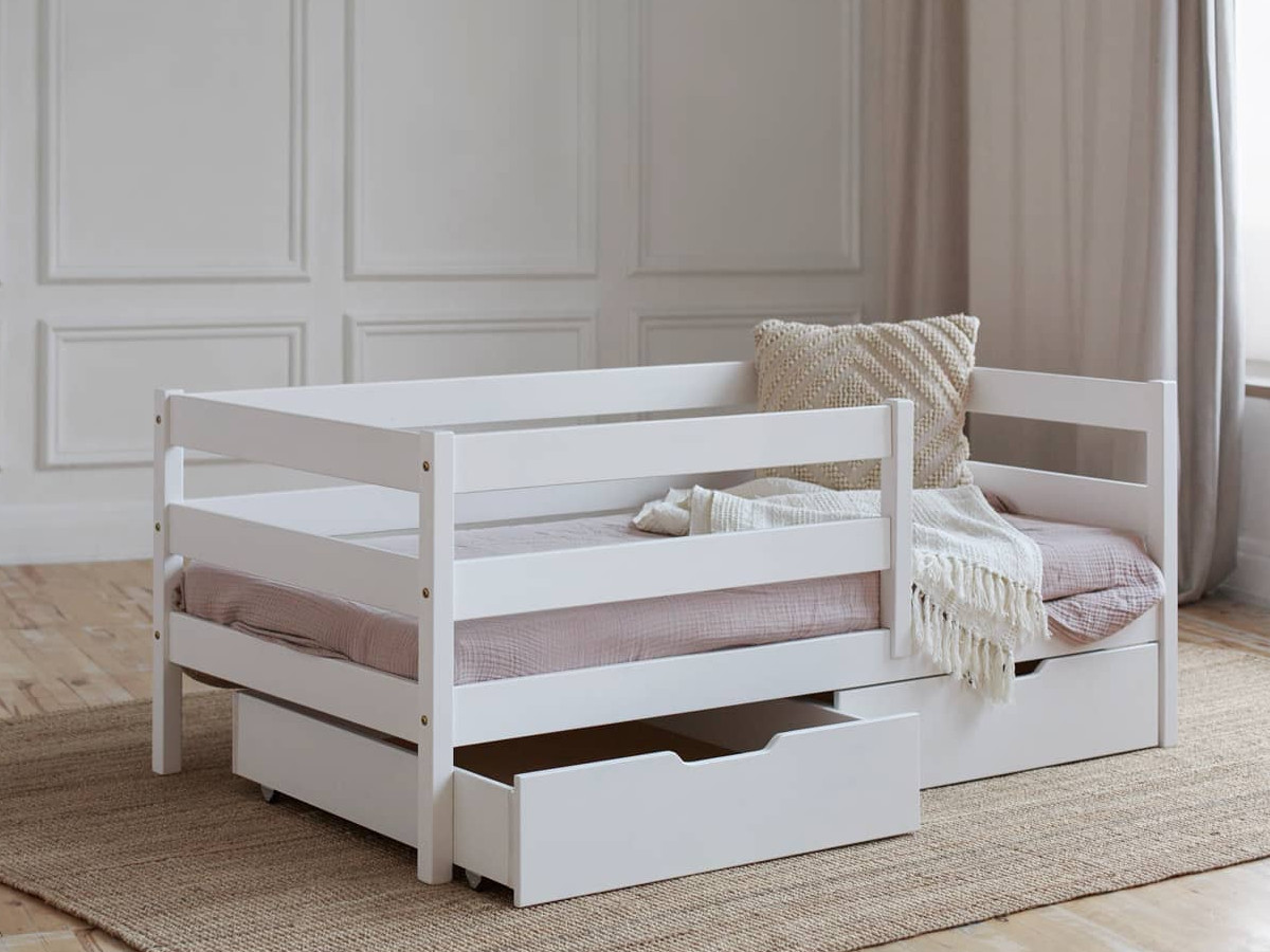 Кровать-софа детская с бортиками белый 80х160 см с ящиками