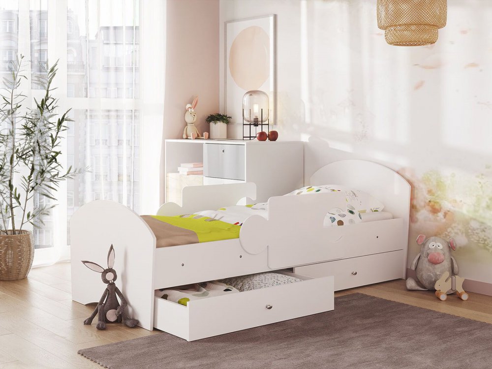 - Кровать Мозаика с бортиками и ящиком белый