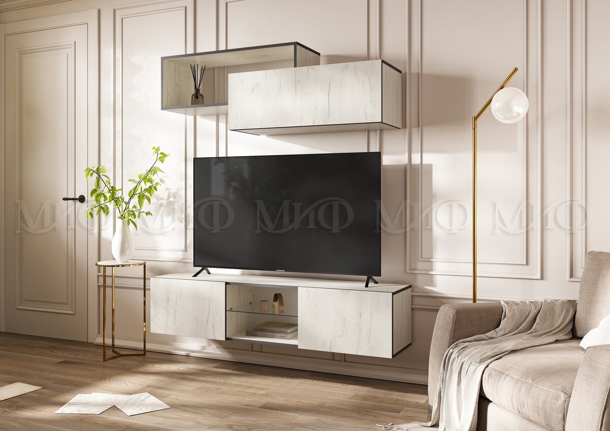 - Гостиная навесная Норд Дуб Крафт Белый
