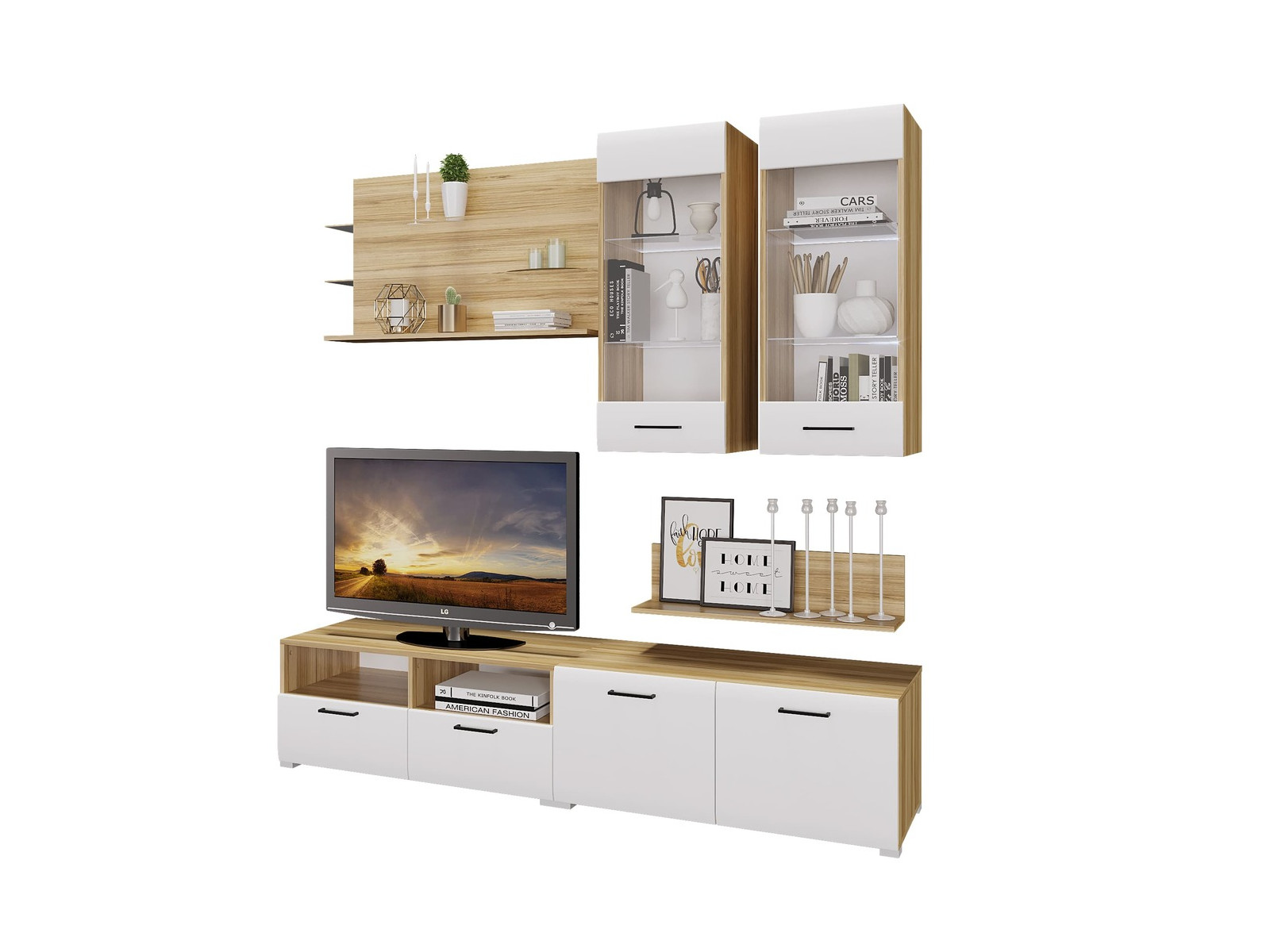 - Гостиная Ненси 3 Крафт золотой, Белый глянец