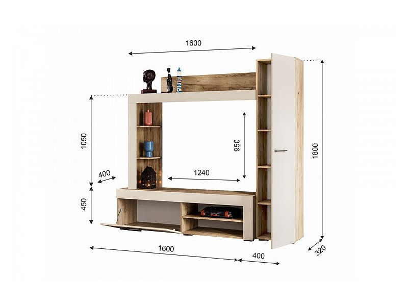 - Гостиная Николь дуб крафт серый/софт айвори