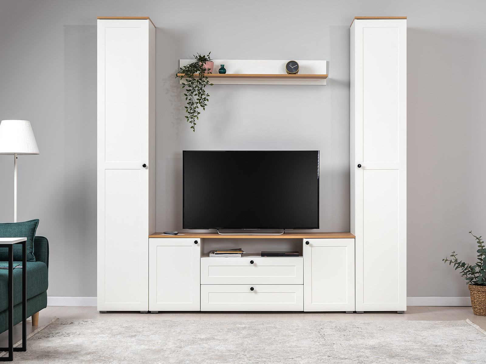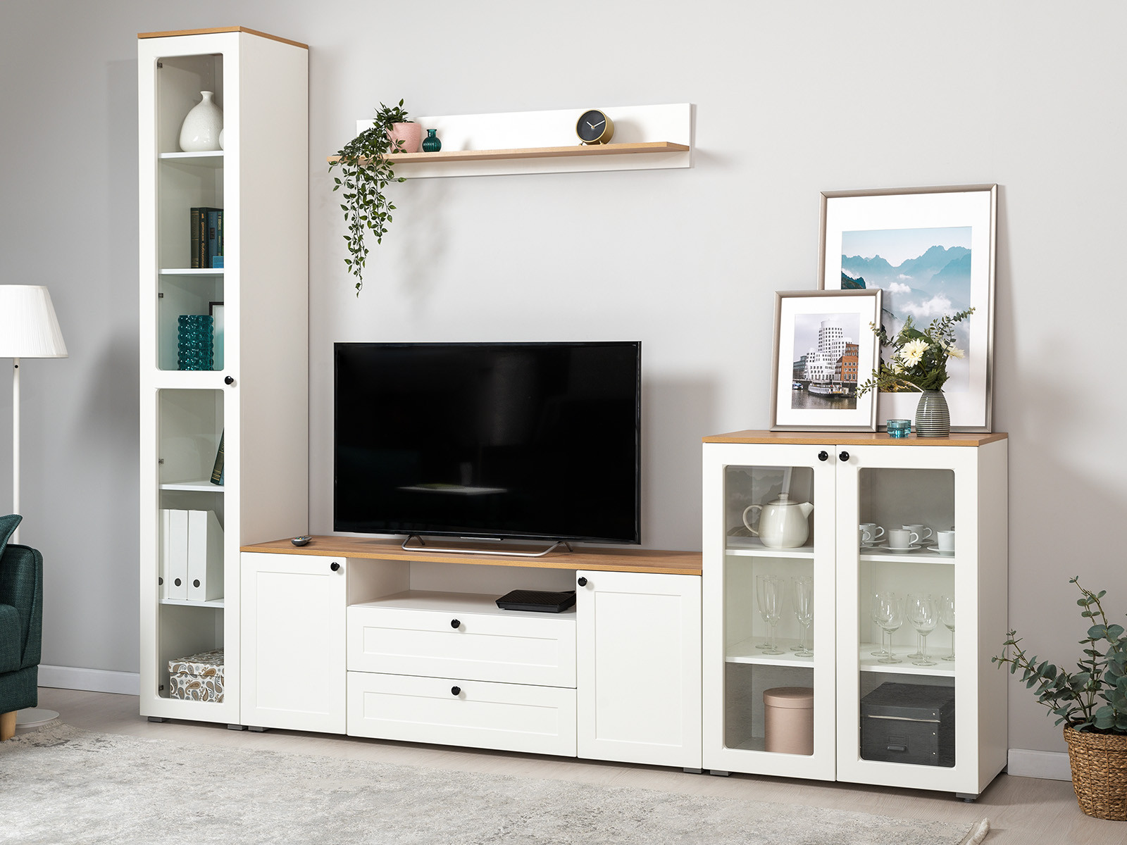 Цена указана за комплект: Полка 16.484, Тумба под ТВ 16.47, Шкаф-витрина 16.394.03, Шкаф-витрина 16.394.01