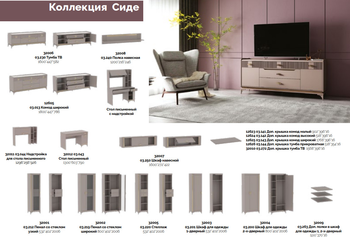 Цена за комплект: Тумба ТВ, Пенал со стеклом широкий, Пенал со стеклом узкий