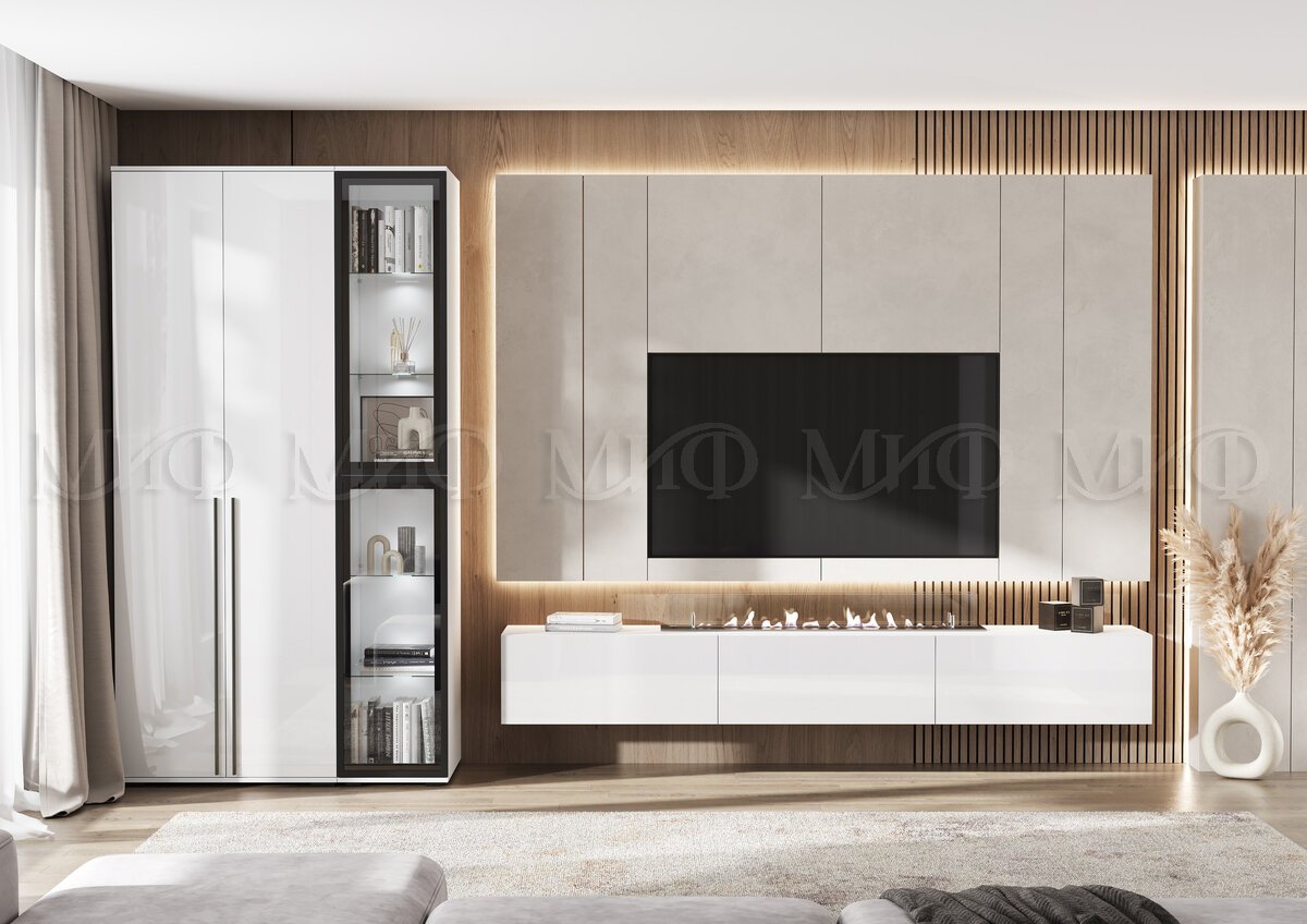 - Модульная гостиная Норд Белый глянец
