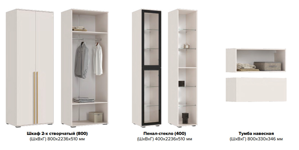 Цена за комплект: Шкаф, Пенал-стекло, Тумба навесная (3шт)