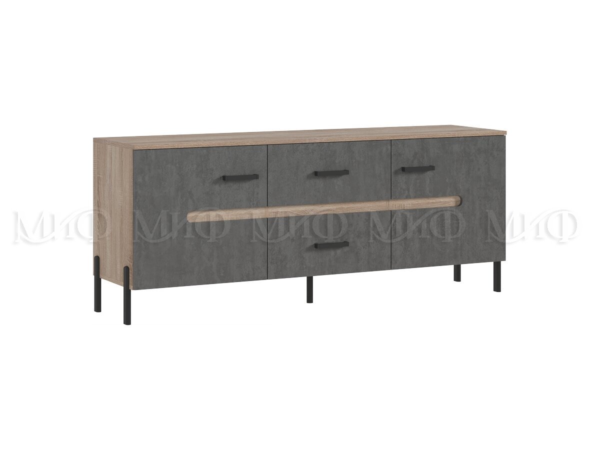 Тумба ТВ (металл) Ким Бетон Темный, Дуб Сонома