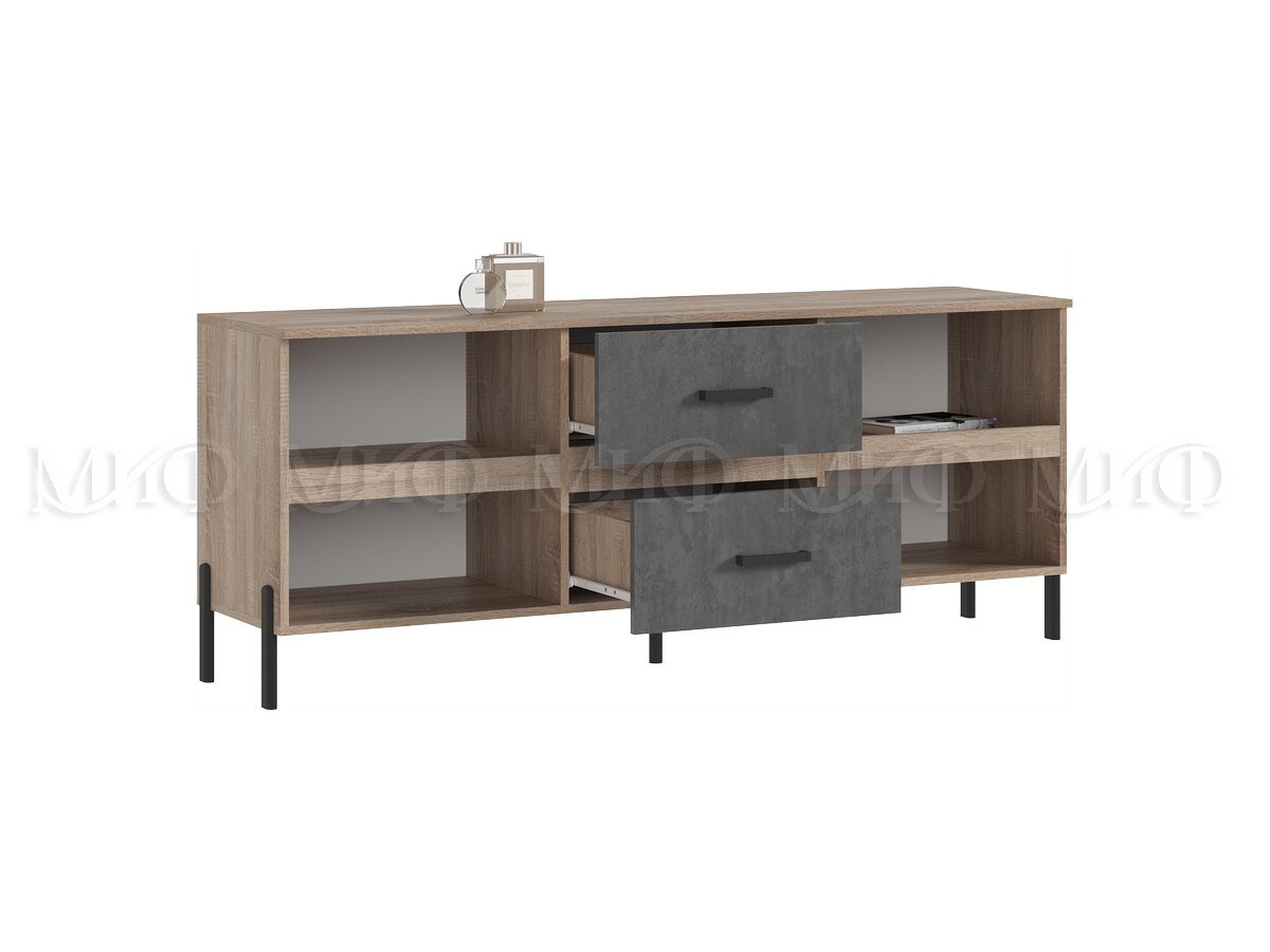 - Тумба ТВ (металл) Ким Бетон Темный, Дуб Сонома