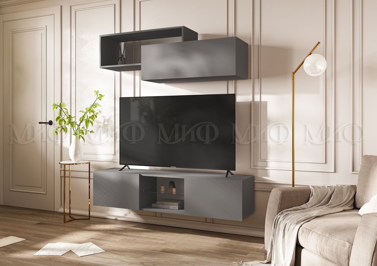 - Тумба ТВ подвесная 1500 Норд Графит