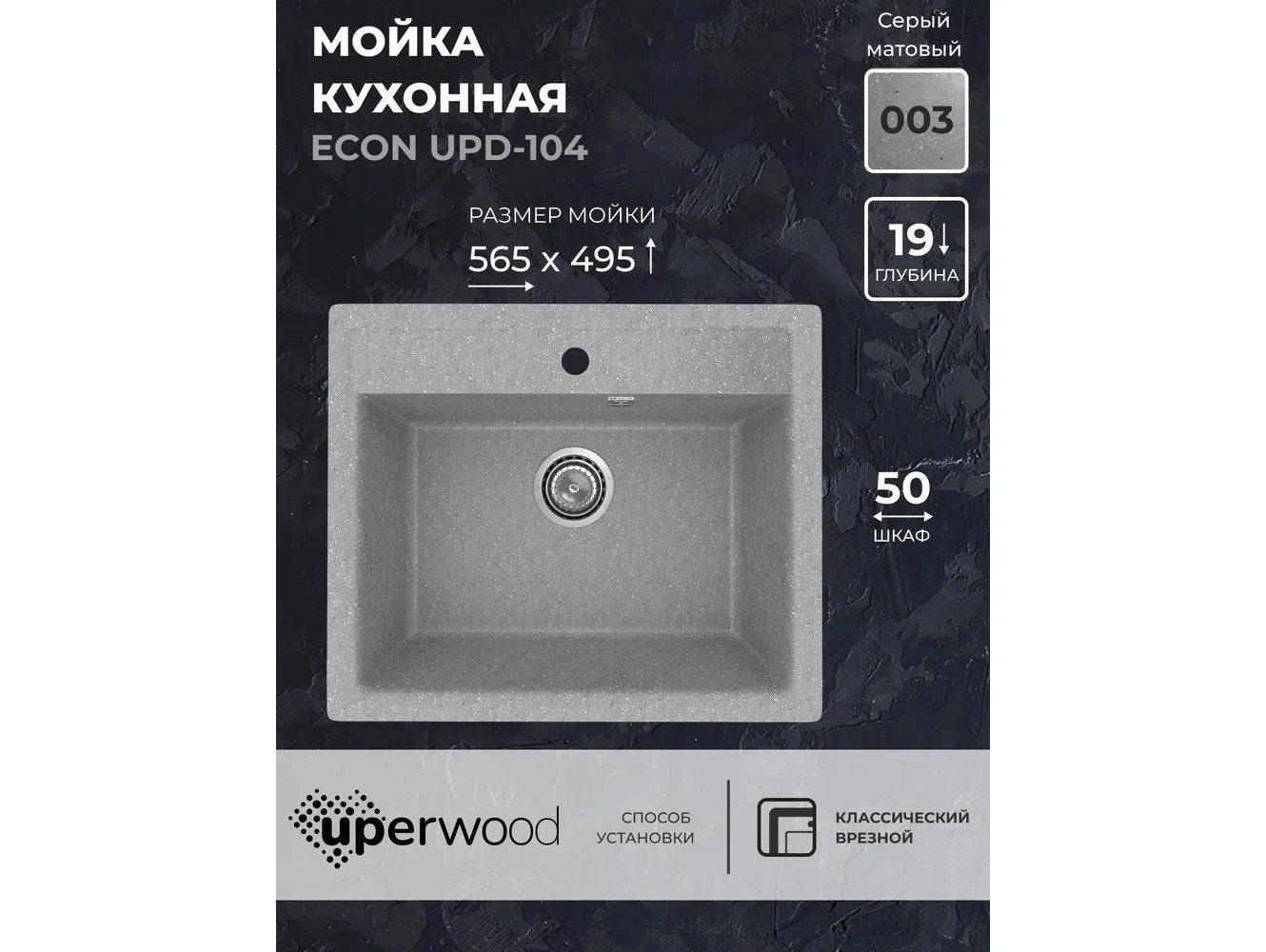 - Кухонная мойка Uperwood ECON UPD-104-003 серая матовая