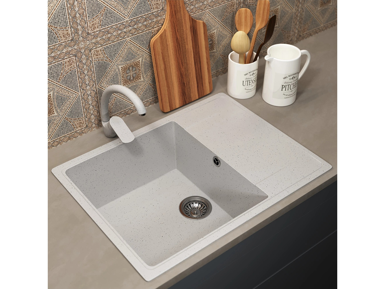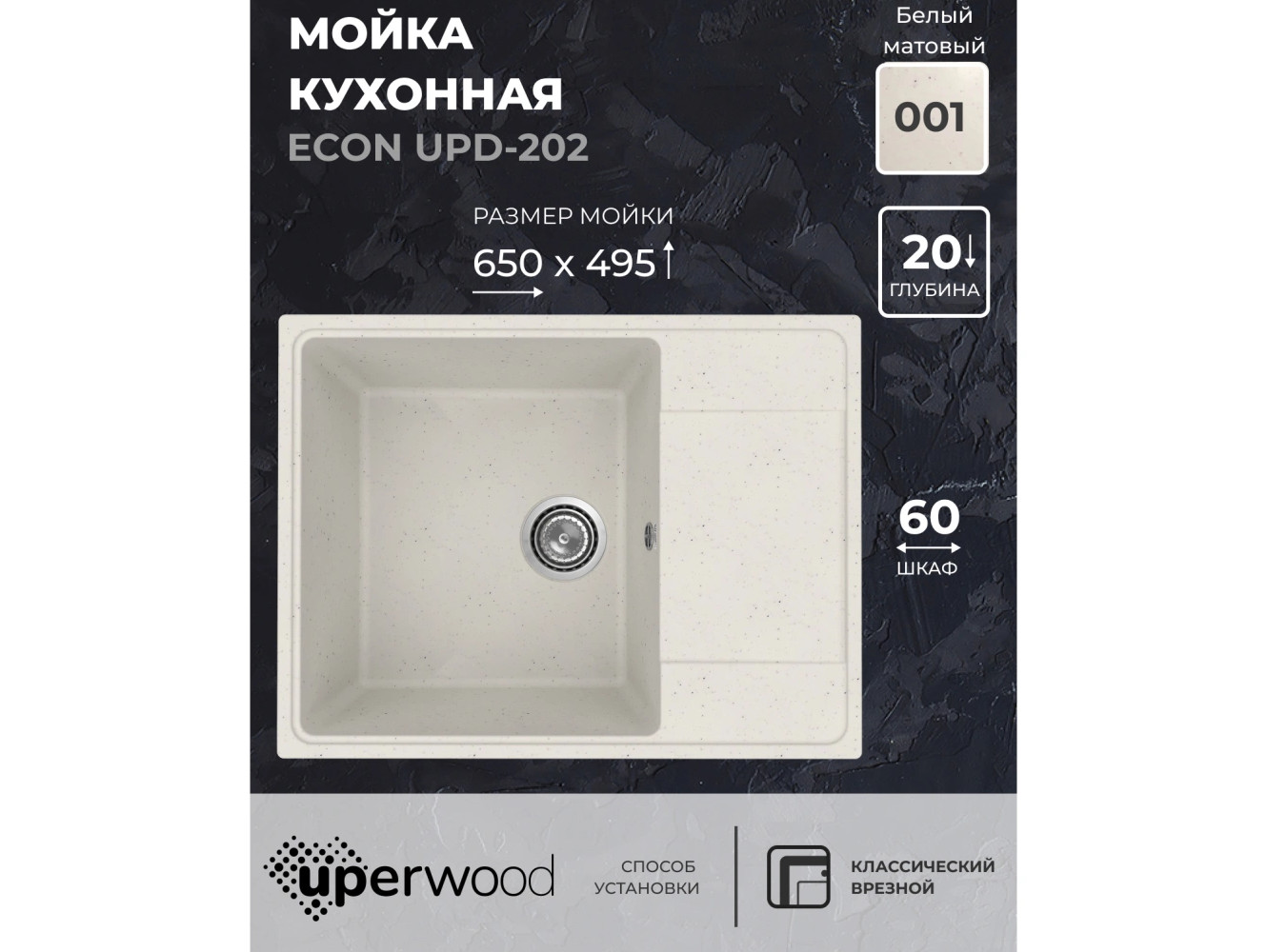 - Кухонная мойка Uperwood ECON UPD-202-001 белая матовая