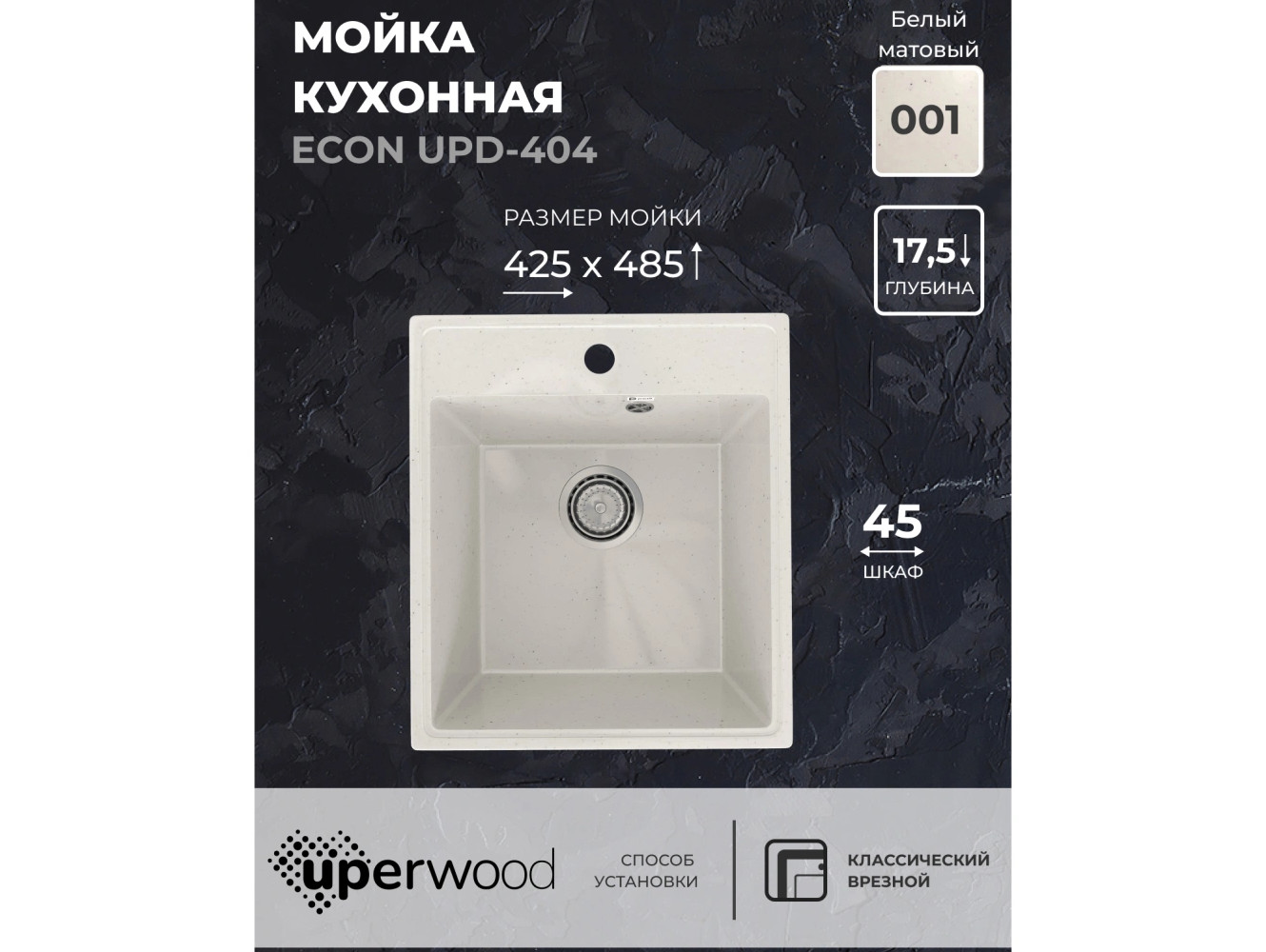 Кухонная мойка Uperwood ECON UPD-404-001 белая матовая