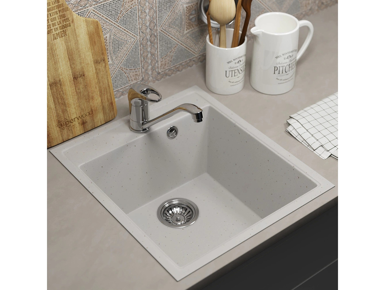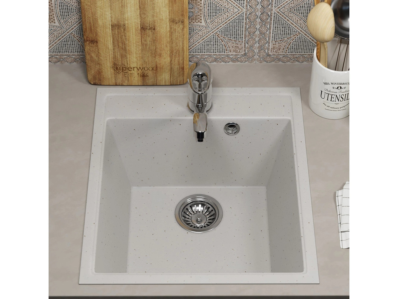 - Кухонная мойка Uperwood ECON UPD-404-001 белая матовая