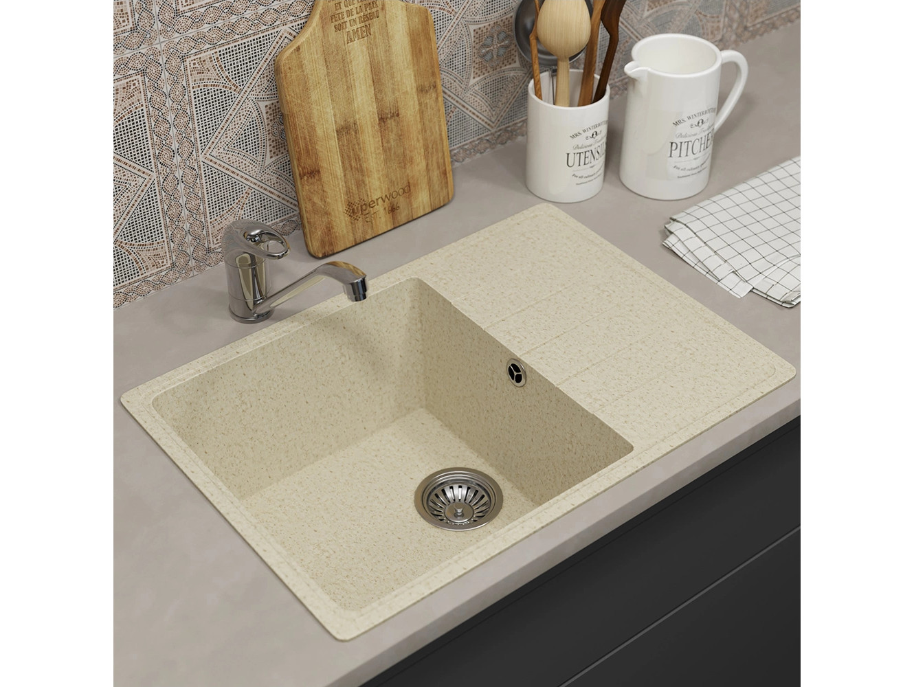 - Кухонная мойка Uperwood ECON UPD-506-002 бежевая матовая