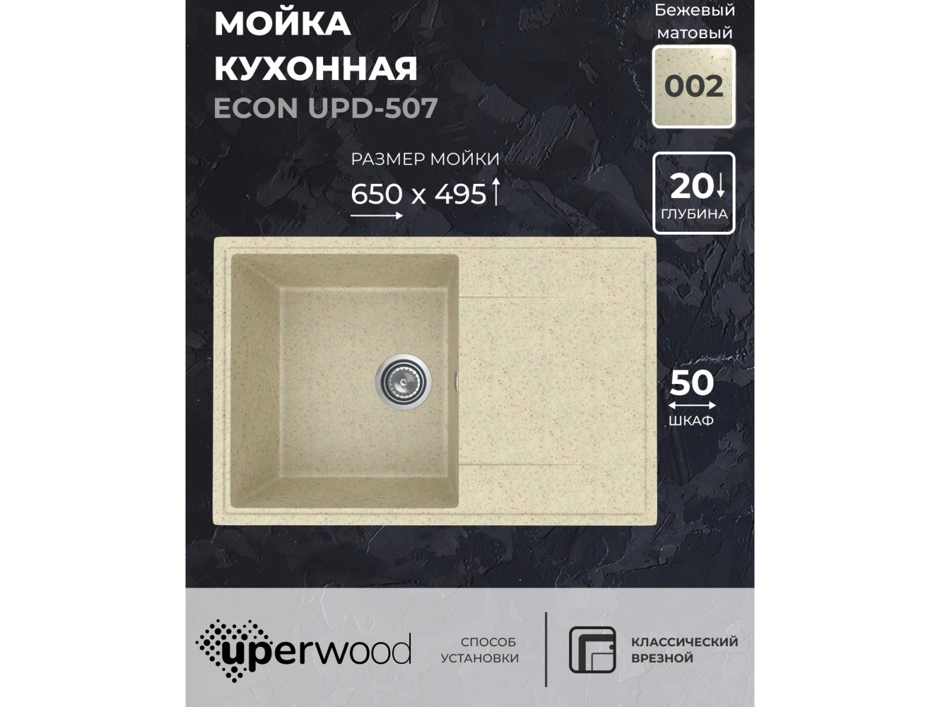- Кухонная мойка Uperwood ECON UPD-507-002 бежевая матовая