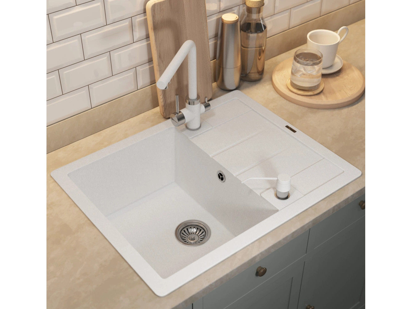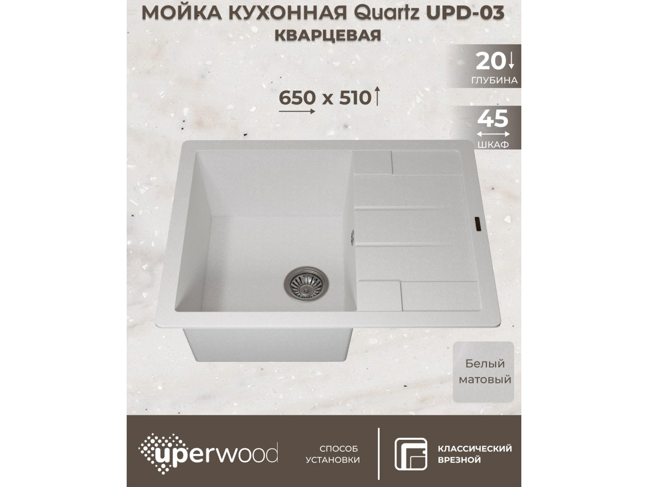 - Кухонная мойка Uperwood Quartz UPD-03-01 белая матовая