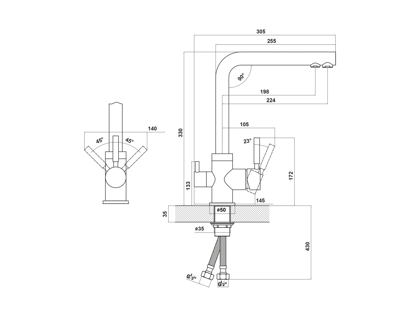 - Высота излива (см) 32
