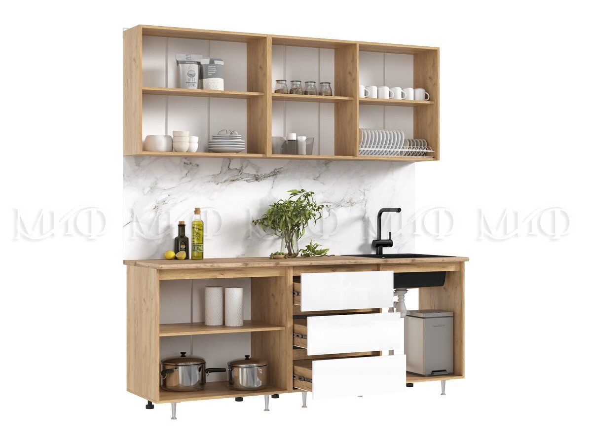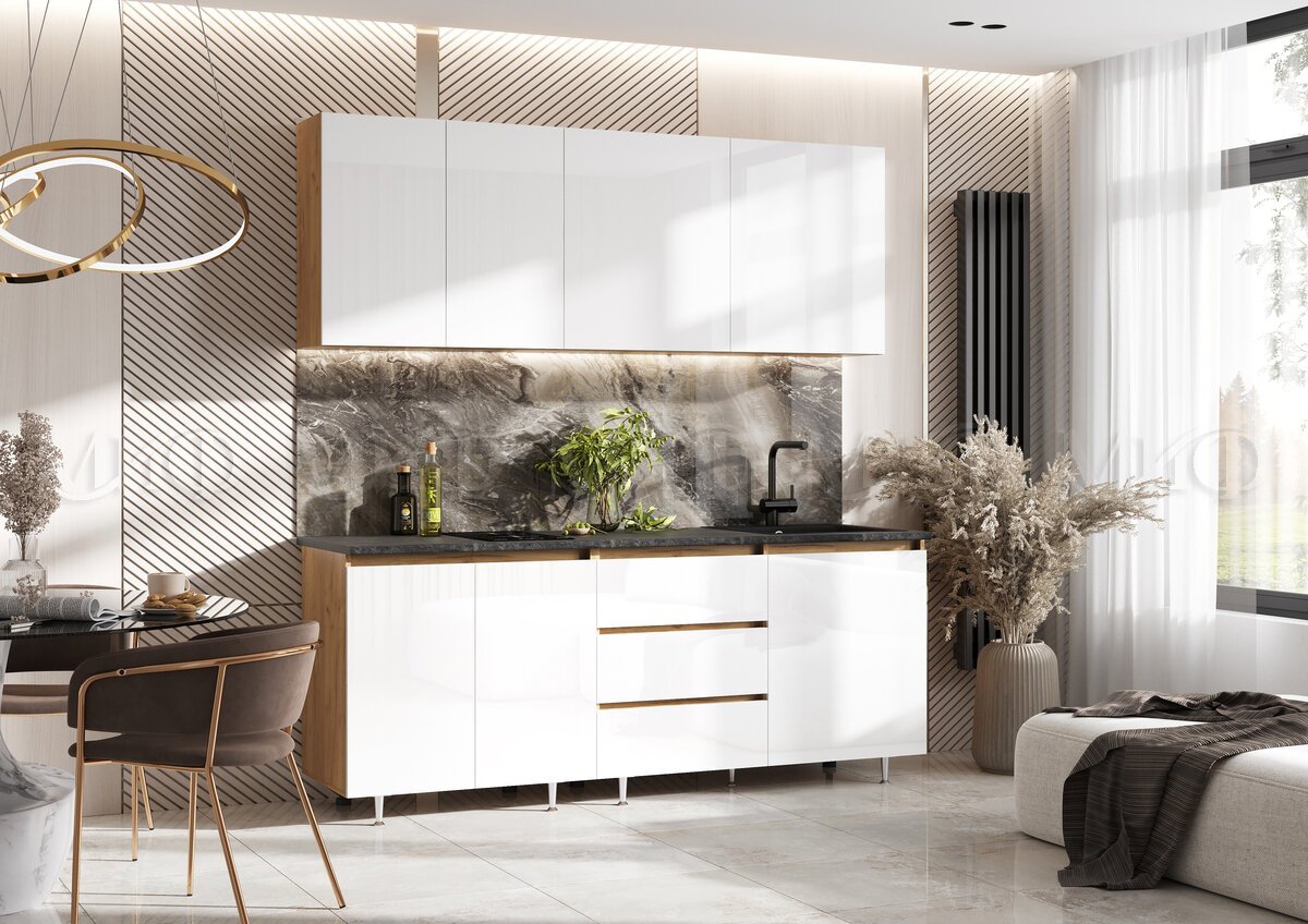 Кухня Челси 2000 мм Компановка №2 Белый глянец холодный, Дуб Крафт (Кастилло)
