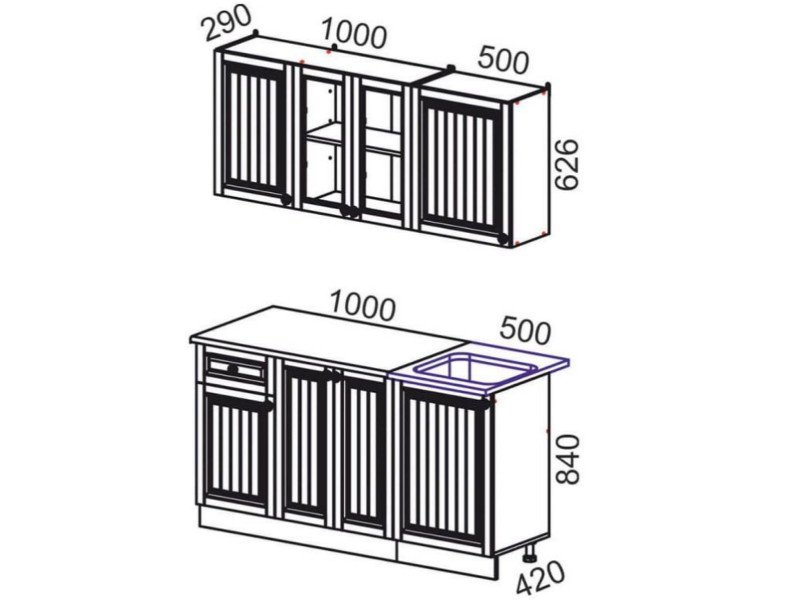 - Стол под мойку (М500) – 1 шт;