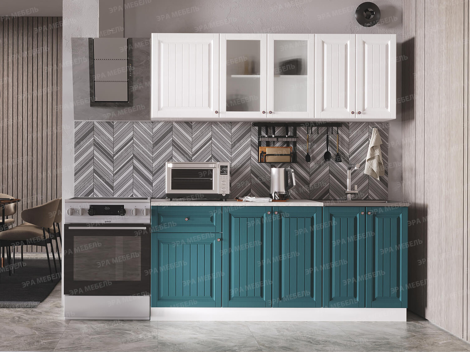 - Кухня Хозяюшка 2000 МДФ Акация белая-Моренга