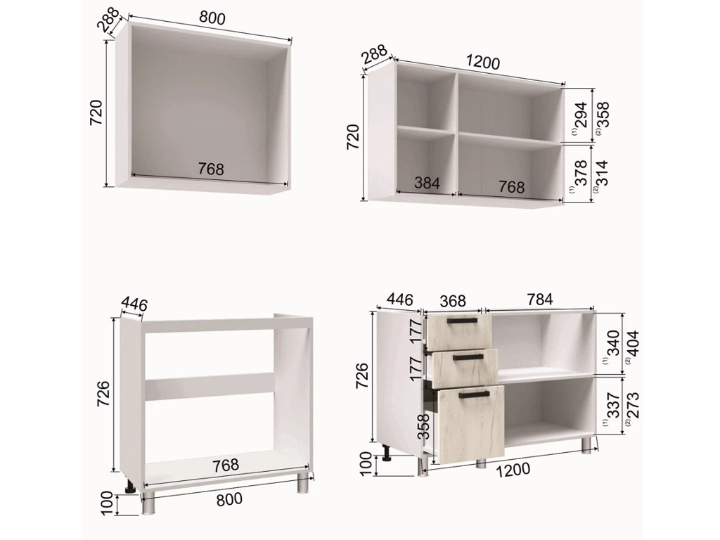 - Высота нижних шкафов, мм 826