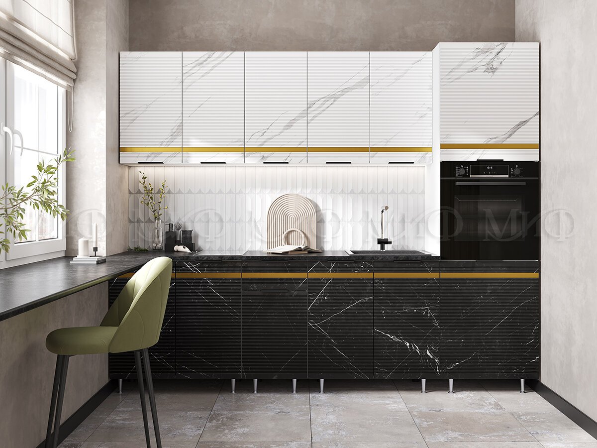 Кухня Милена 2,6 м Мрамор белый софт/Мрамор блэк софт
