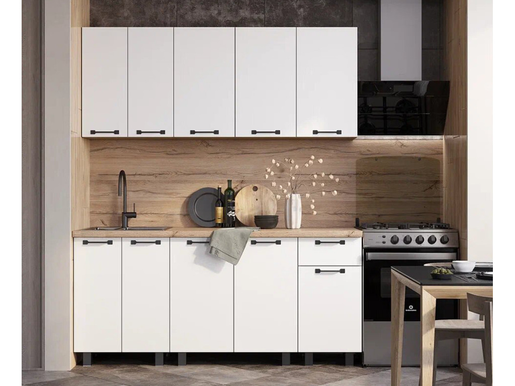 - Комплектуется цельной столешницей размером 1,8 м, толщиной 38 мм, декор - дуб кера.