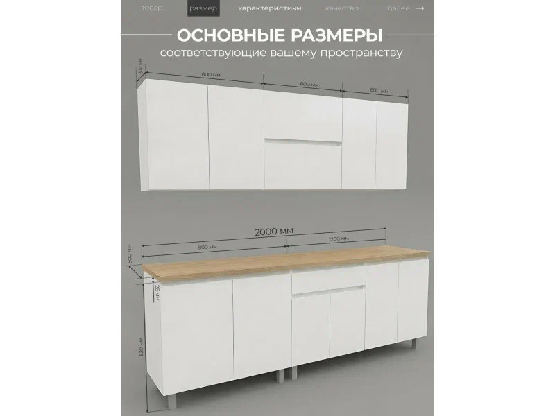 Кухонный гарнитур 2000 мм со столешницей