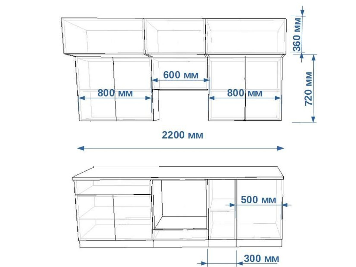 Кухонная мойка, стеновая панель, посудосушитель, планки для столешницы в комплект не входят.