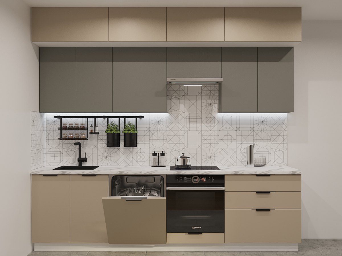 - Кухонный гарнитур арт 16 Фаска Обсидиан Пикрит 2800 мм