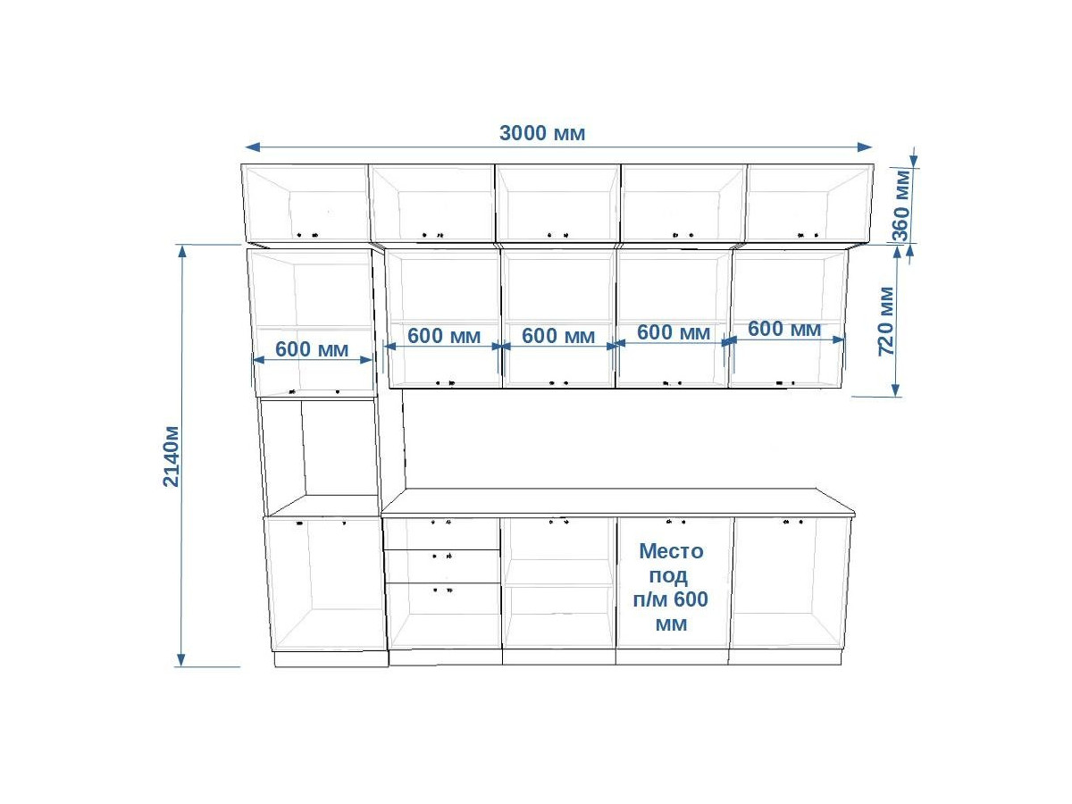 - высота верхних шкафов 720 мм