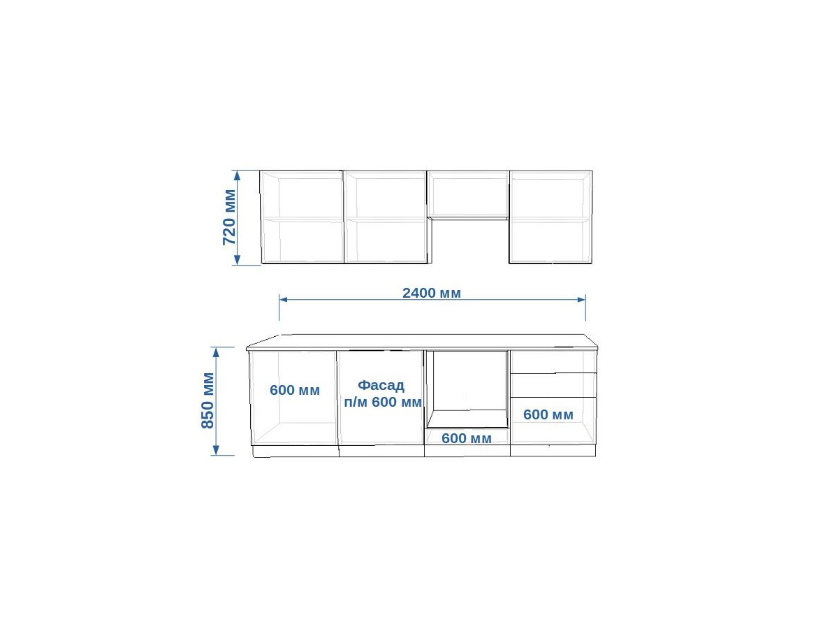 - высота верхних шкафов 720 мм