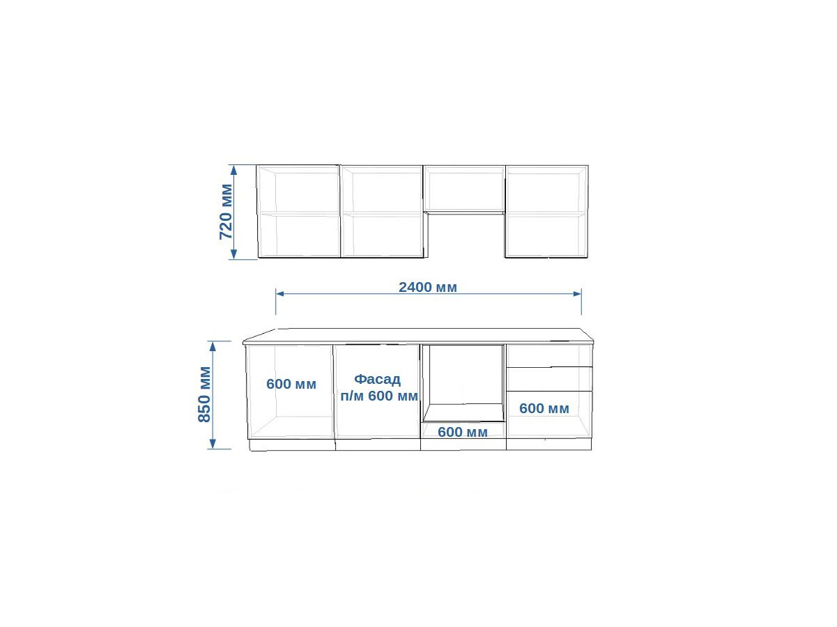 - Кухонный гарнитур арт 39 Лайн Тальк Обсидиан 2400 мм