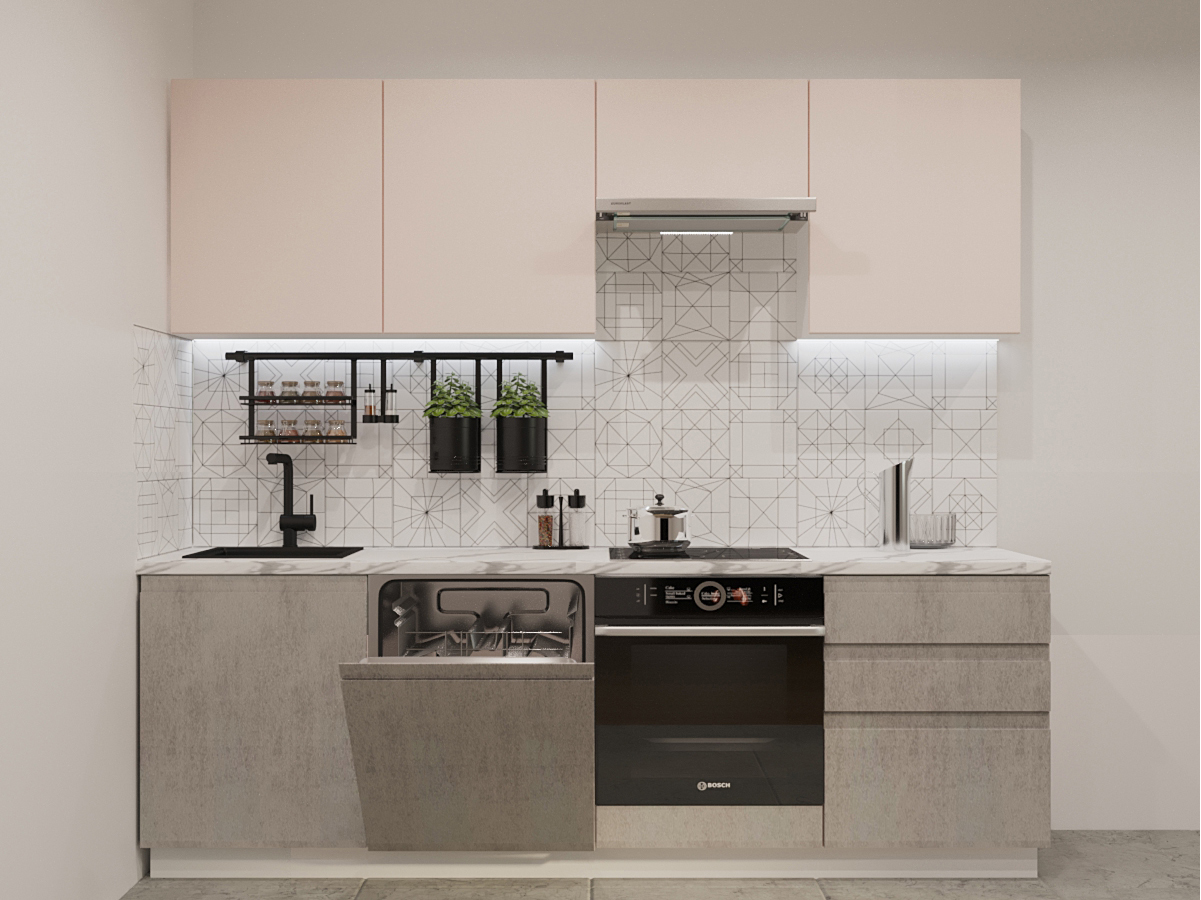 - Кухонный гарнитур арт 41 Лайн Фарфор Бетон светлый 2400 мм