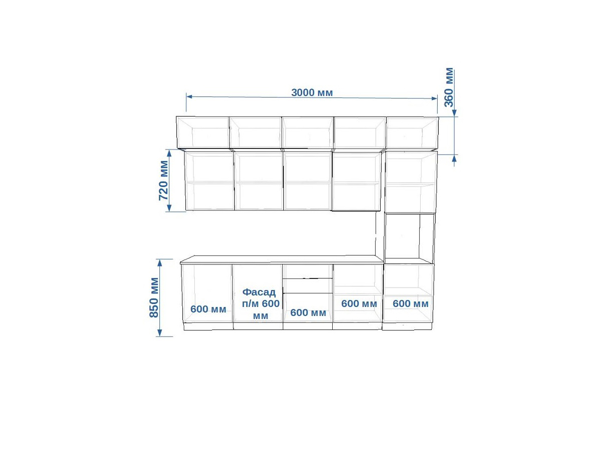 - высота верхних шкафов 720 мм