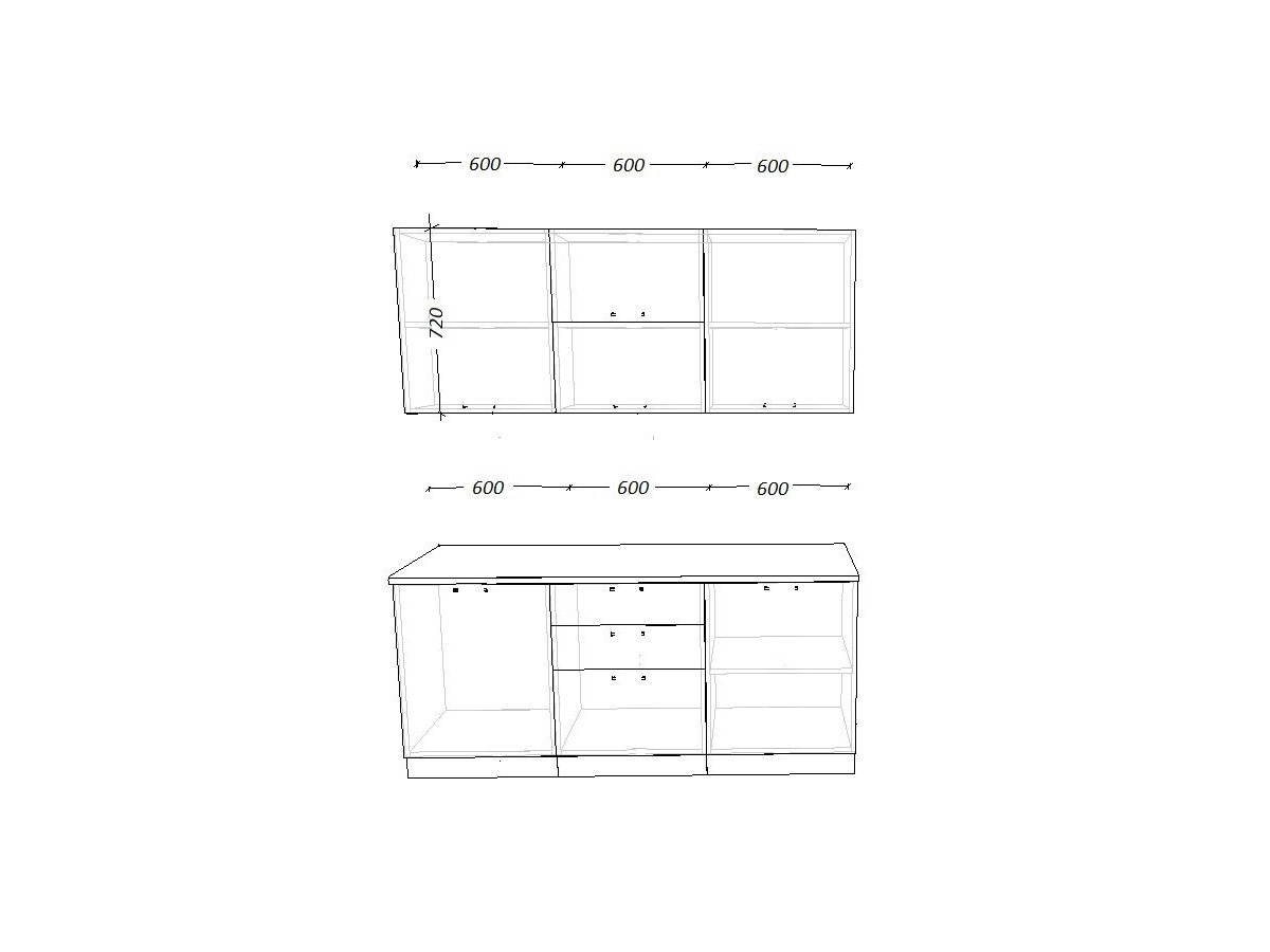 - высота верхних шкафов 720 мм