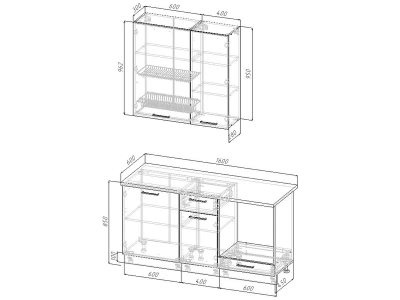 Ширина кухни: 1600 мм